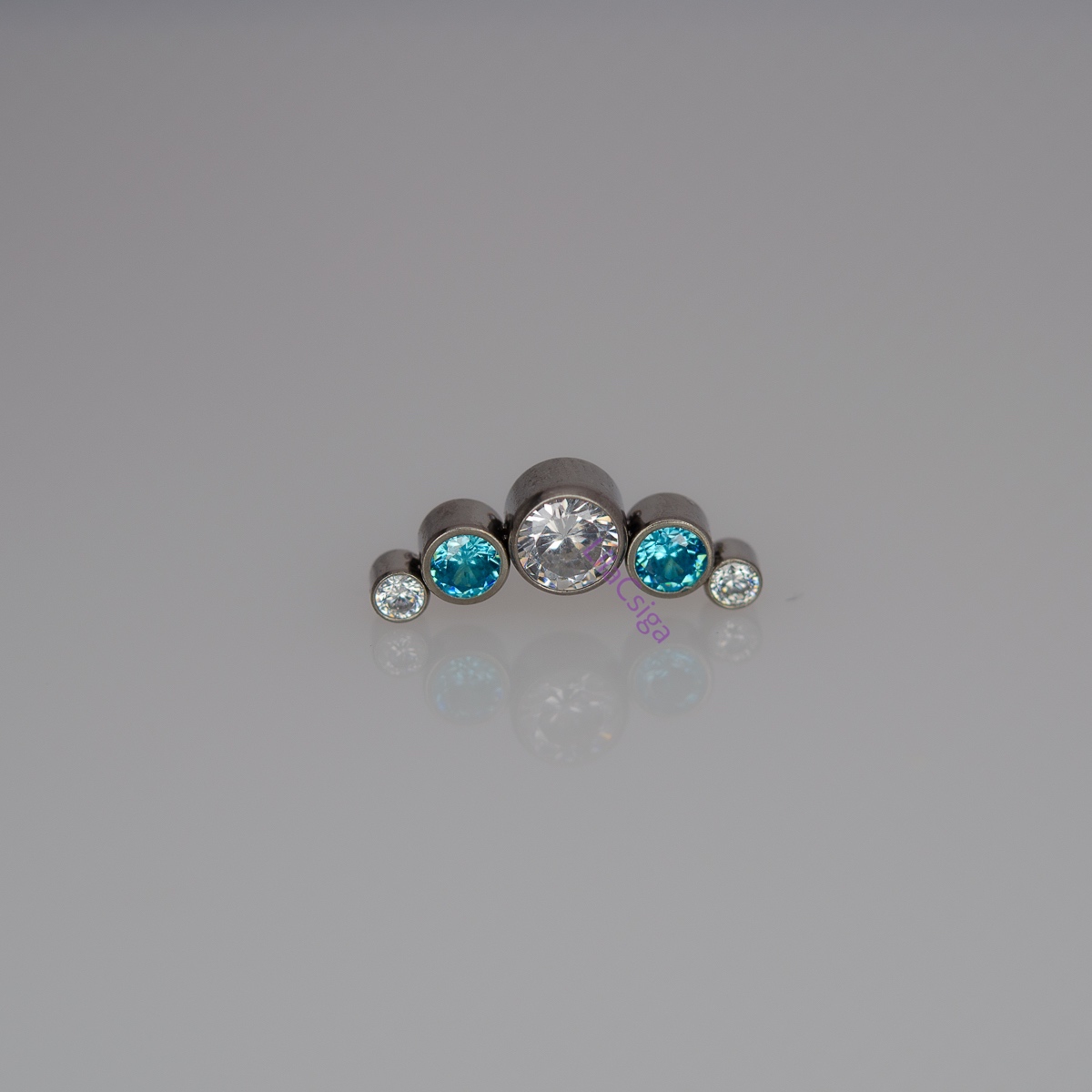 A Snow Queen egy íves kialakítású testékszer felsőrész, amely öt darab különböző méretű, kristálytiszta cirkónia követ foglal modern füzér formába. Az egymás mellett sorakozó köveket polírozott titánium foglalatok rögzítik, melyek természetes ívet alkotnak a fülben.